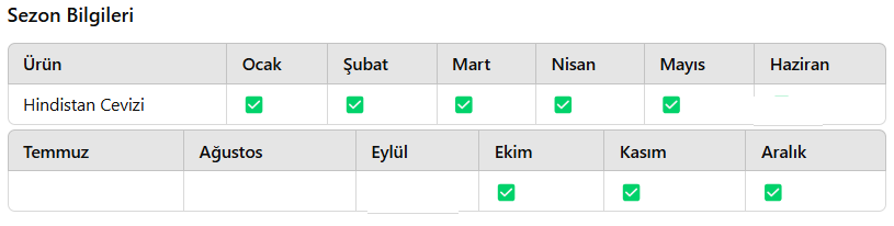 Olgunlaşma/Hasat Dönemi Ekim - Mayıs aylarında